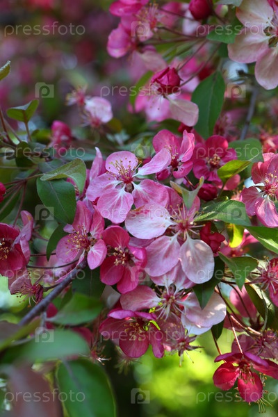 Цветущие ветви райских яблок в парке