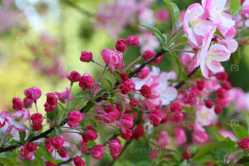 Цветущие ветви райских яблок в парке