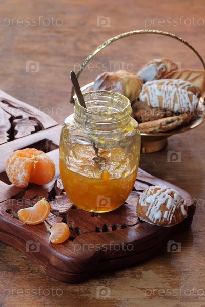 Мандариновый джем и печенье на деревянном фоне