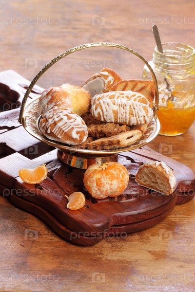 Мандариновый джем и печенье на деревянном фоне