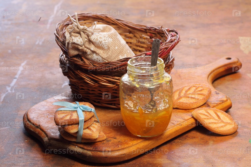 Мандариновый джем и печенье на деревянном фоне