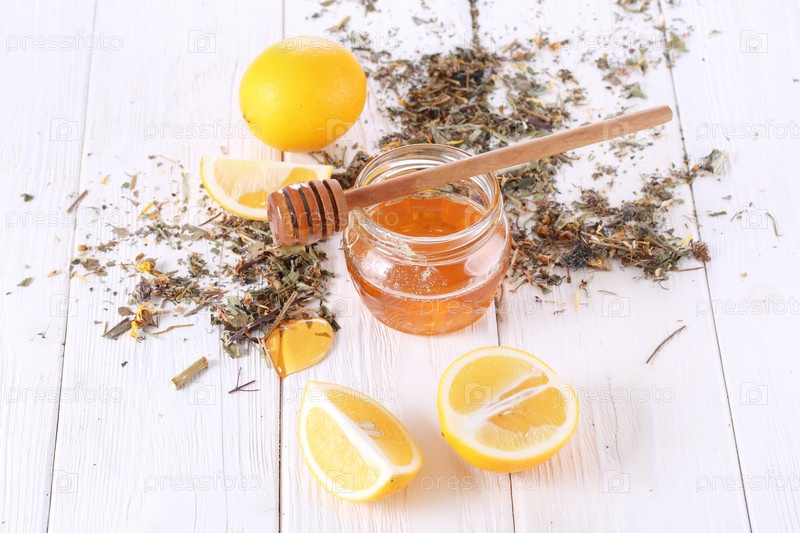 Натюрморт с лимоном,имбирем и медом на белом фоне