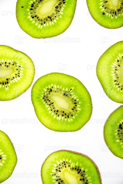 Узор из свежих ломтиков киви на белом фоне
