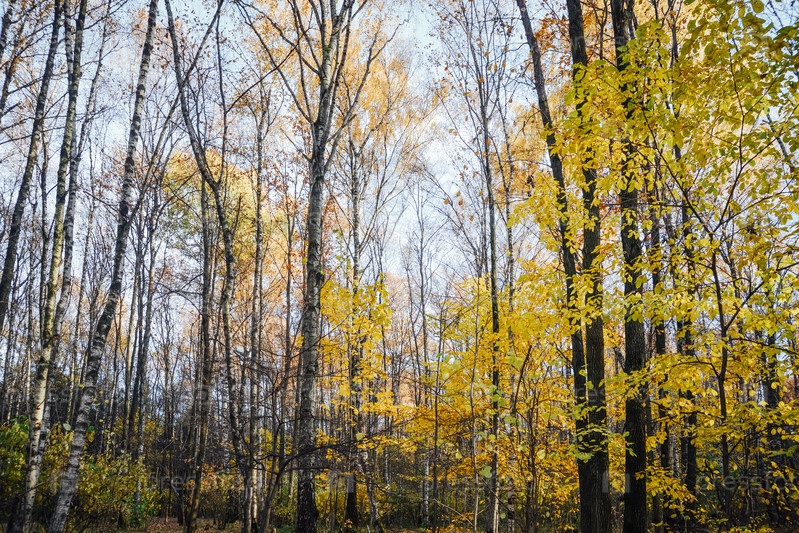 Деревья в лесу осенью. Отдых на природе в парке. Осенний природный растительный фон