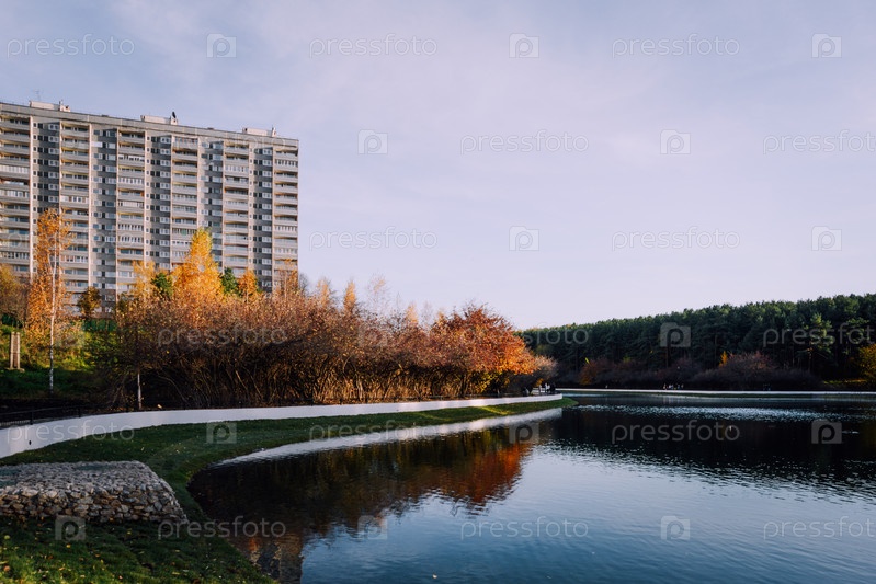 Озеро в осеннем городском парке