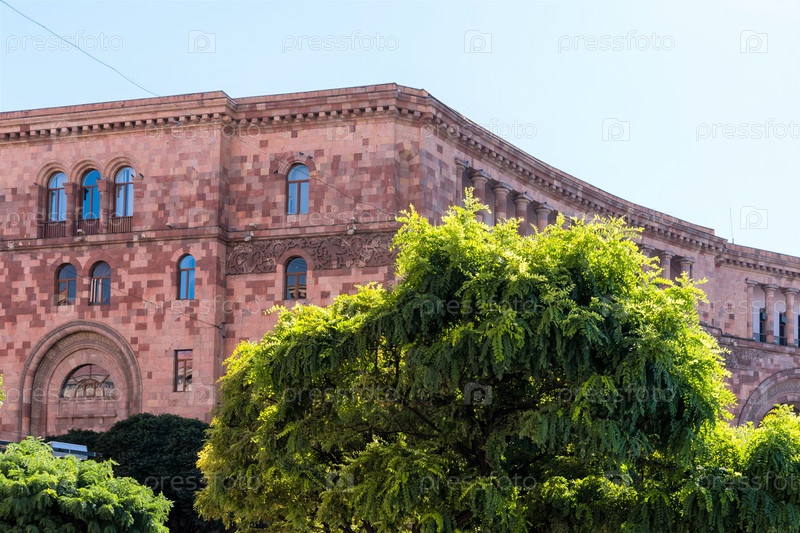 Армения, Ереван, сентябрь 2022 г. Фрагмент фасада здания на площади Республики