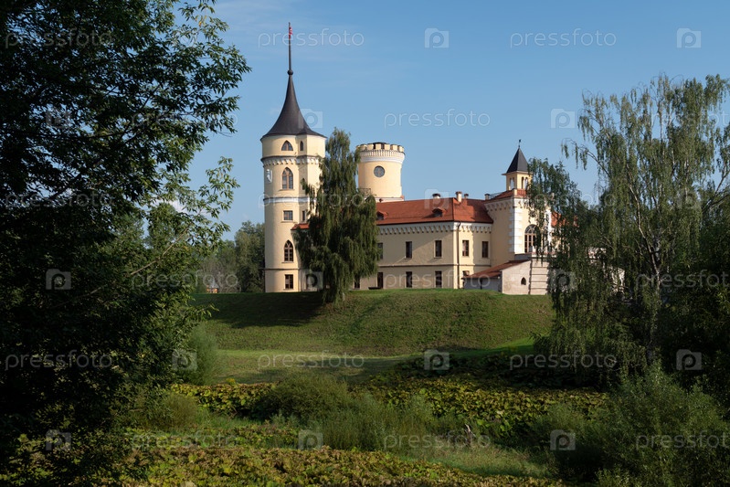 Вид на замок российского императора Павла I-Мариенталя (крепость БИП) с реки Славянка, Павловск, Санкт-Петербург, Россия