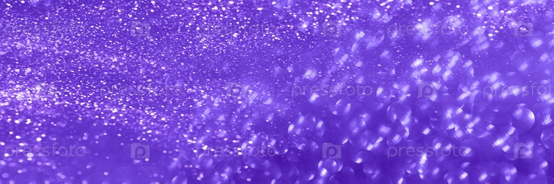 Праздничный размытый фон баннера, огни и блестки фиолетового цвета. Абстрактный фон для дизайна