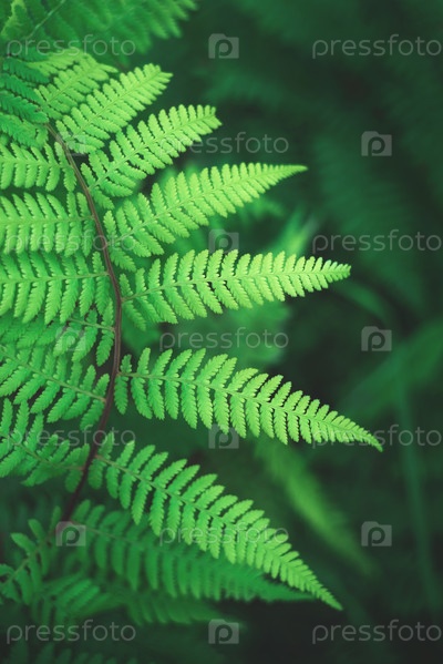 Сочная зеленая ветка лесного папоротника. Естественный фон для дизайна