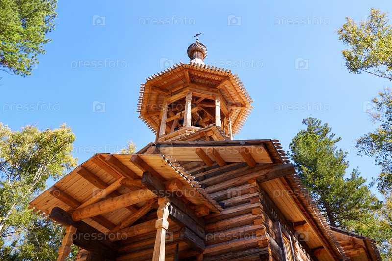 Красивая деревянная церковь в солнечный летний день. Крупный план