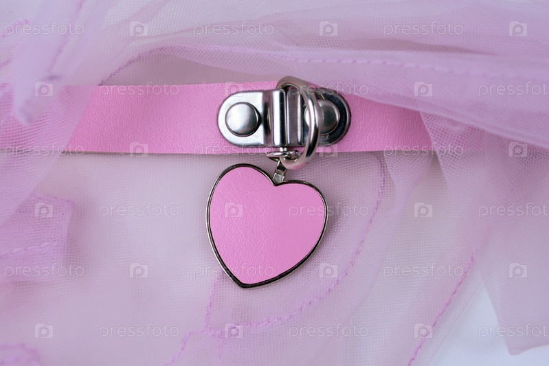 Розовый чокер с сердечком и прозрачные перчатки из фатина