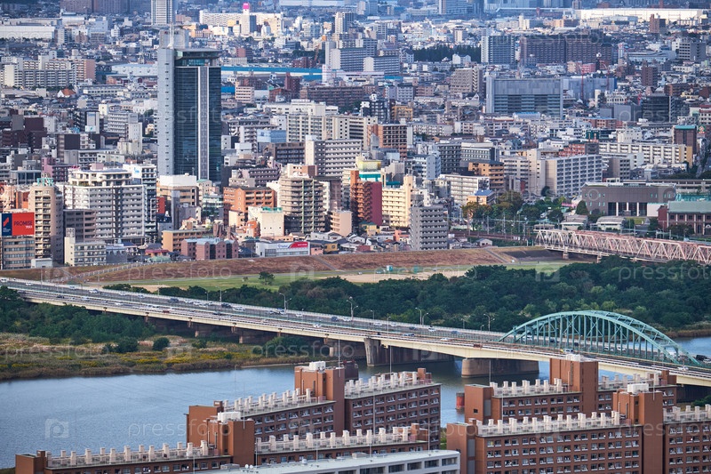Вид на район Умэда и реку Йодо в центре города Кита. Осака. Япония