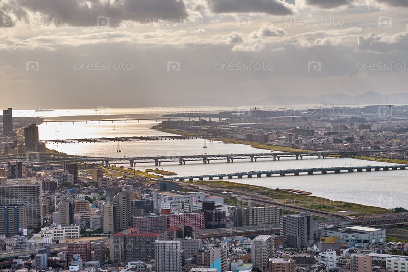 Вид на реку Йодо с высоты птичьего полета. Осака. Япония