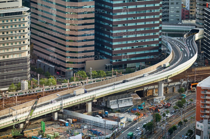 Вид на шоссе над улицей в Осаке. Осака