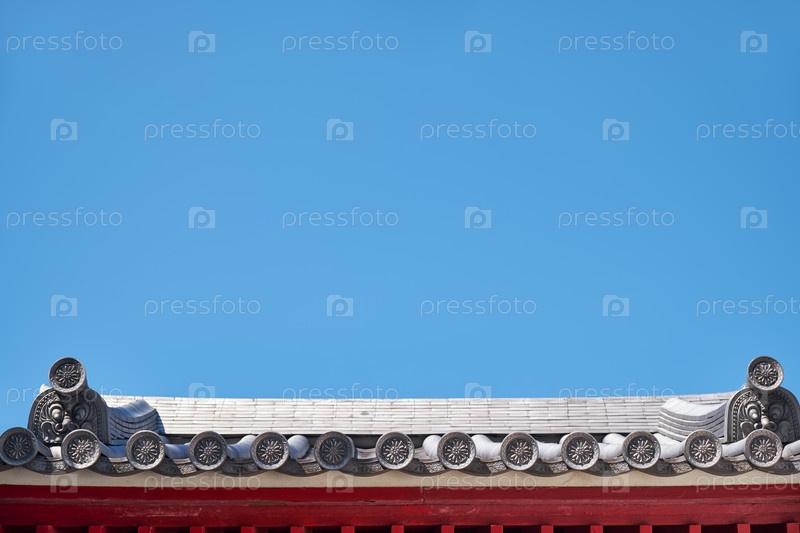 Ваданги, украшенные лепными узорами на крыше традиционного японского храма. Осака. Япония