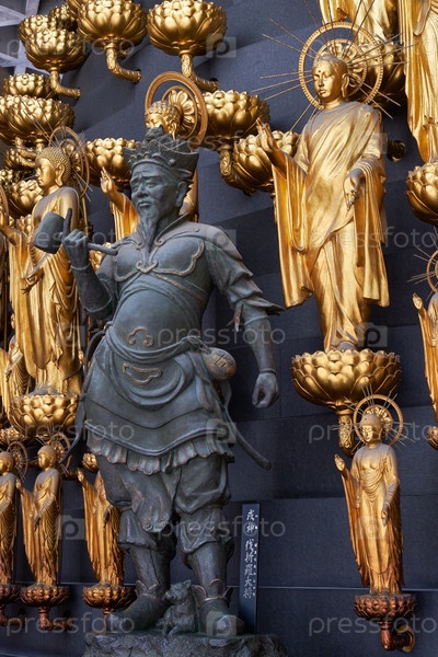 Золотые статуи Будд в зале Сандзэнбуцу-до. Храм Иссиндзи. Осака. Япония