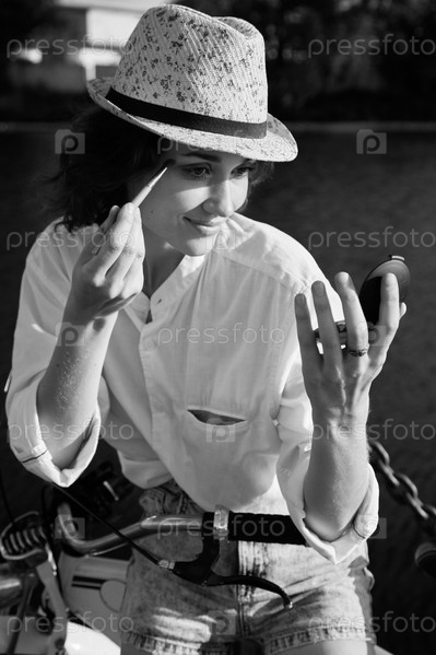 Байкер наносит косметику
