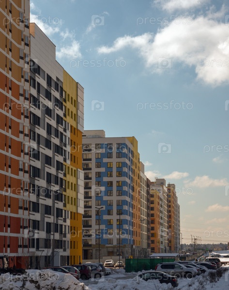 Зима. Современный малоэтажный жилой комплекс