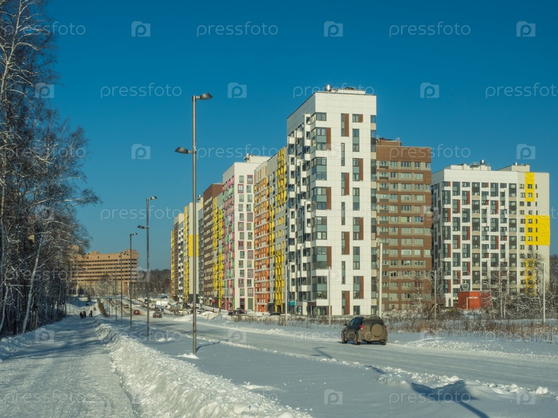 Зима. Современный малоэтажный жилой комплекс