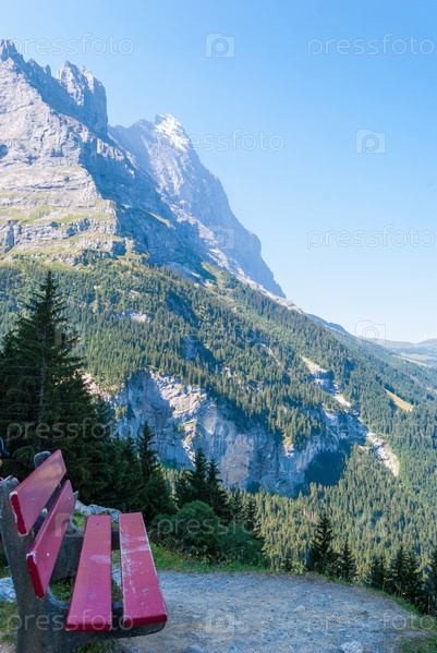 Походная тропа в швейцарских Альпах летом с видом на восточные склоны пика Эйгер