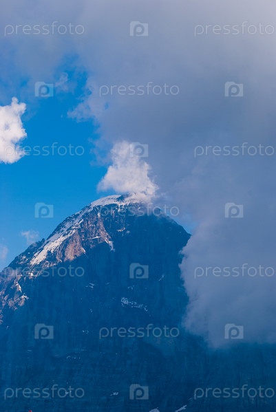 Вид на северную стену Эйгера в облаках. Бернский Оберланд, Швейцария