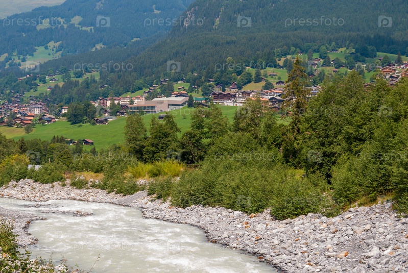 Бурная горная река в швейцарских Альпах, Гриндельвальд, Европа