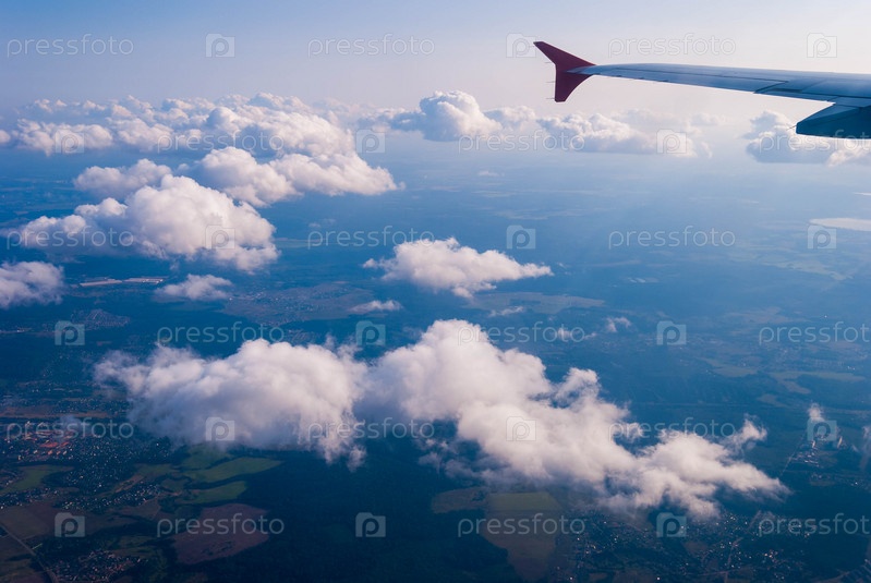 Крыло самолета, летящего над облаками