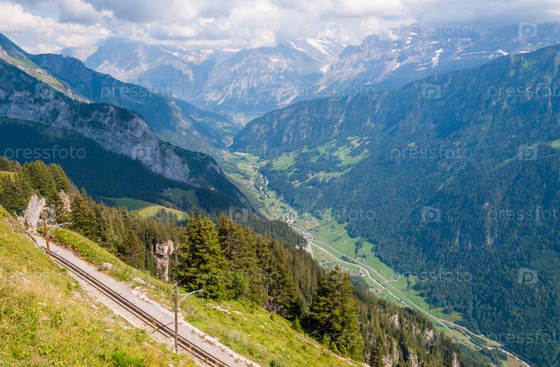 Вид сверху на глубокое красивое ущелье в швейцарских Альпах