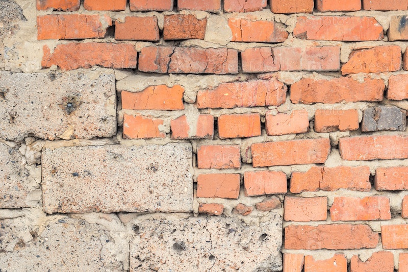 Стена из старого изношенного красного кирпича. как фон