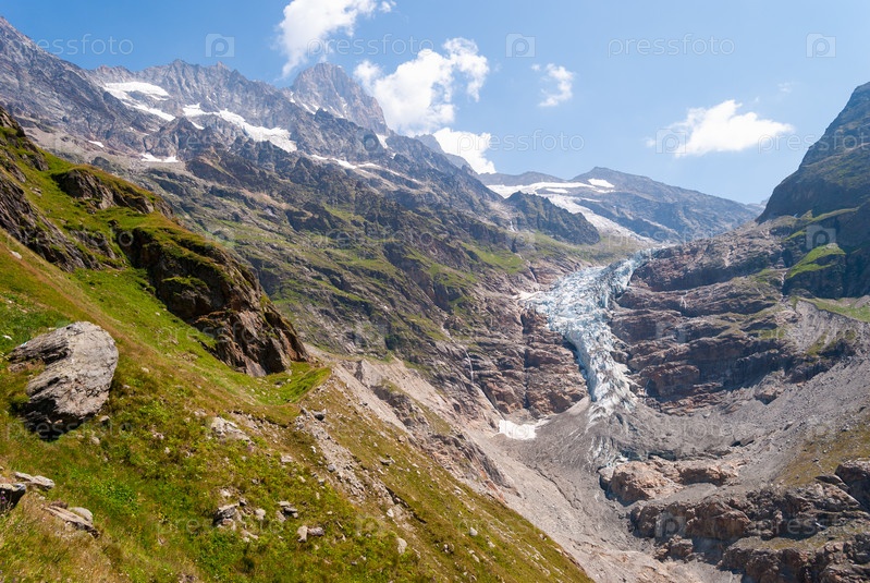 Прекрасные виды на Унтерер Гриндельвальдглетчер в ярком солнечном свете швейцарских Альп недалеко от пика Эйгер, Швейцария