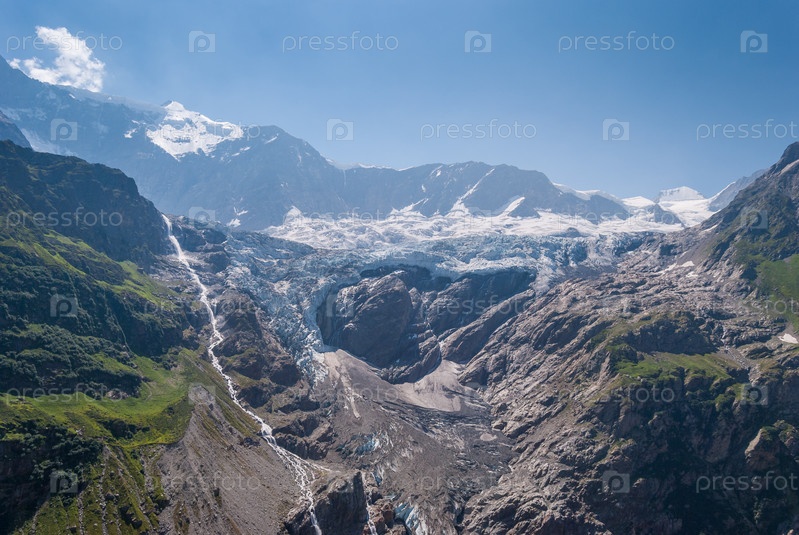 Прекрасные виды на Унтерер Гриндельвальдглетчер в ярком солнечном свете швейцарских Альп недалеко от пика Эйгер, Швейцария