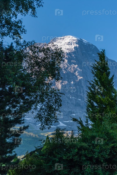 Сказочные альпийские деревянные домики, красивые горы и знаменитый туристический городок Гриндельвальд на северной стороне Эйгерских гор Бернский Оберланд Швейцария Европа