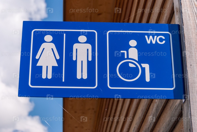Вывеска на стене, туалеты для мужчин и женщин и людей с ограниченными возможностями. Швейцария
