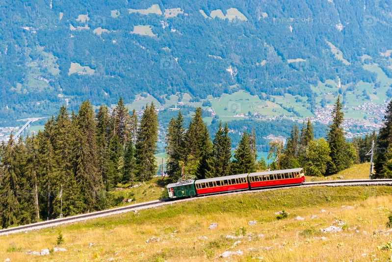 Пассажирский ретро-поезд движется из Шиниге Платте в Интерлакен. Швейцария