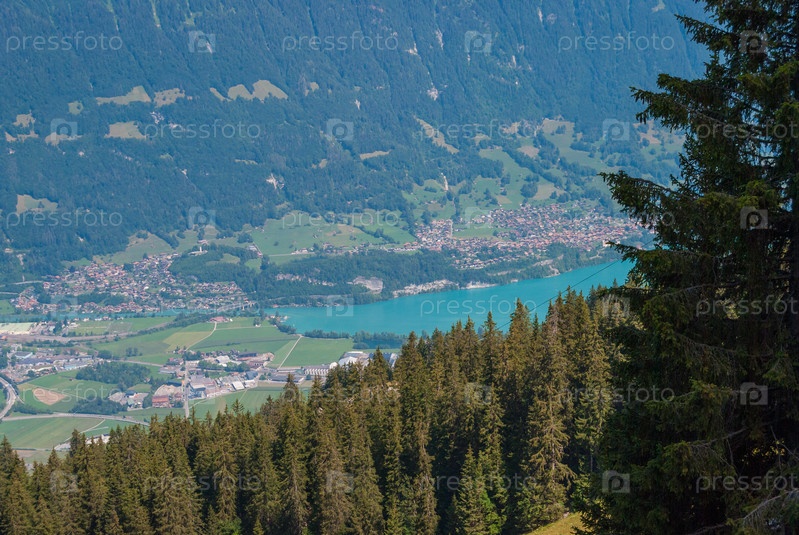Красивая долина Интерлакен и озеро Тунерзее. Альпы Швейцарии