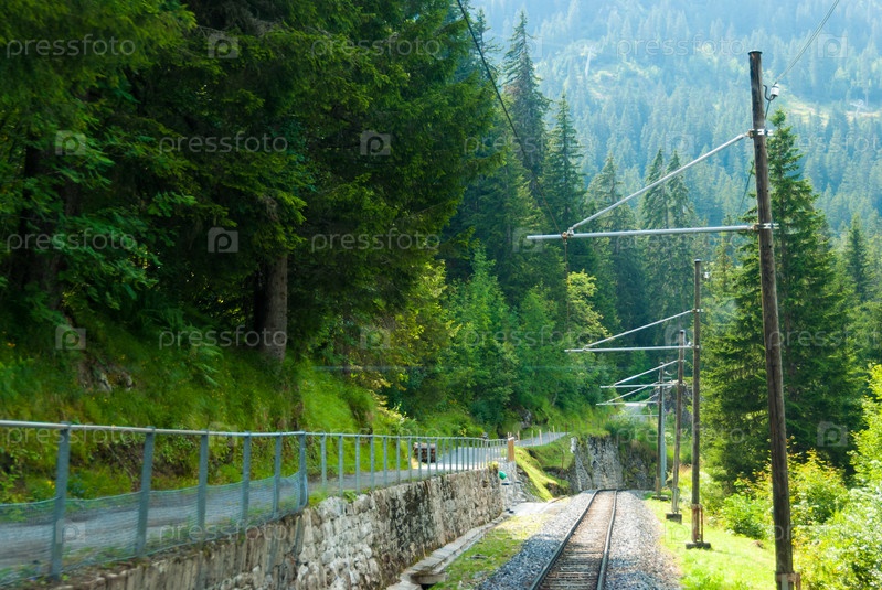 Железная дорога в живописных горах Швейцарских Альп