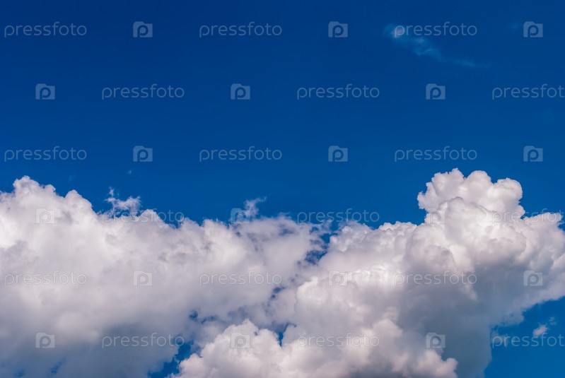 Белые кучево-дождевые облака на фоне сочного голубого неба