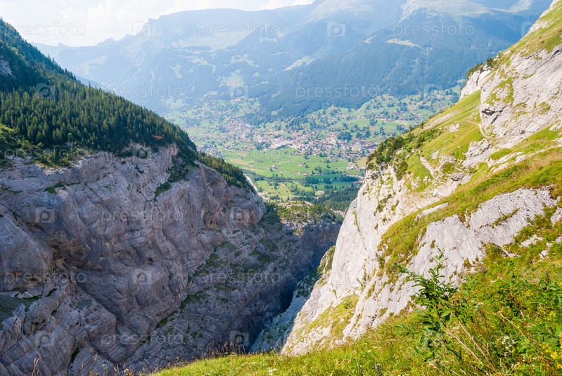 Походная тропа в швейцарских Альпах летом с видом на восточные склоны пика Эйгер