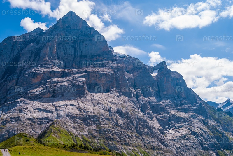 Красивый альпийский пейзаж с пиком Веттерхорна, Гриндельвальд Бернский Оберланд Швейцария Европа