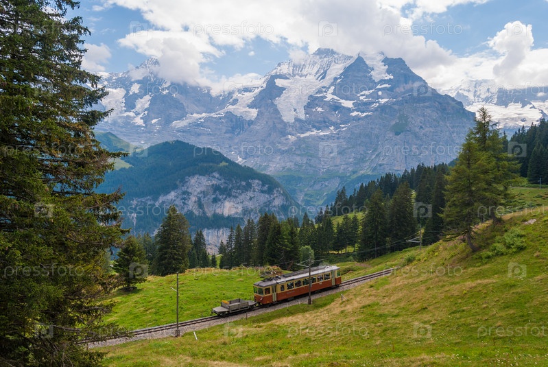 Железная дорога в живописных горах Швейцарских Альп