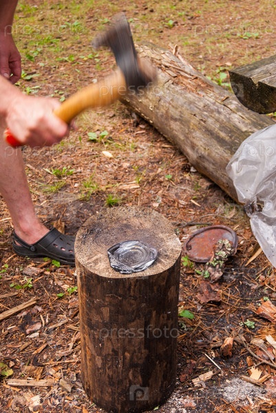 Процесс утилизации металлических банок в туристическом походе
