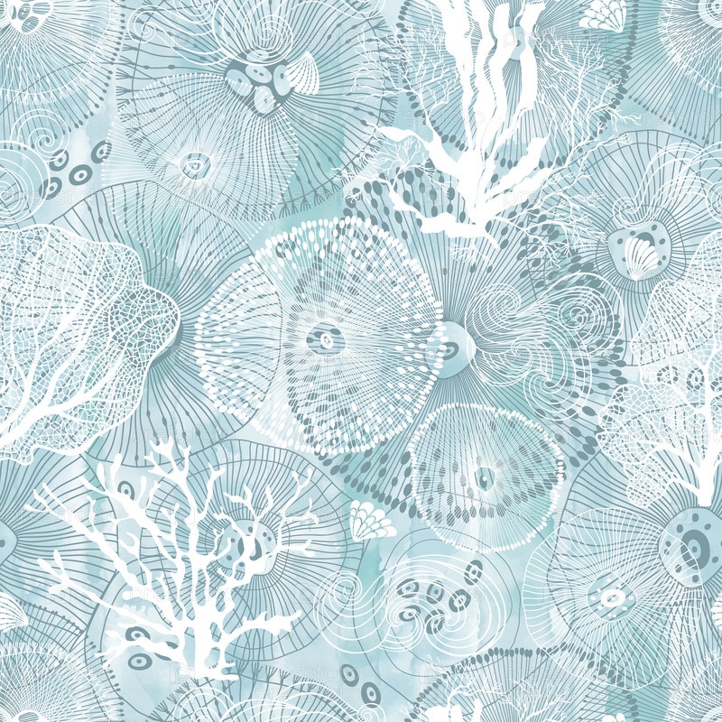 Море. Абстрактный бесшовный узор на морскую тему на синем акварельном фоне. Вектор. Идеально подходит для шаблонов дизайна, обоев, упаковки, ткани и текстиля