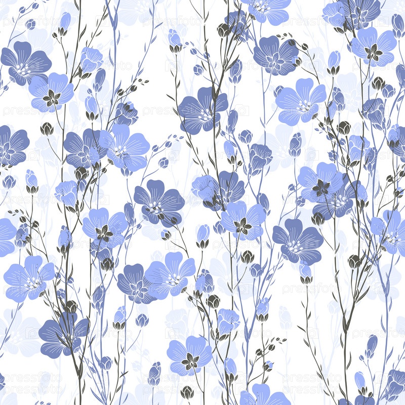 Цветочный бесшовный узор льняного растения с цветами и бутонами