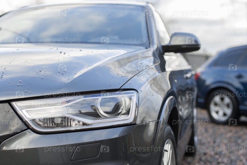 Новый чистый автомобиль после мойки крупным планом, вид спереди