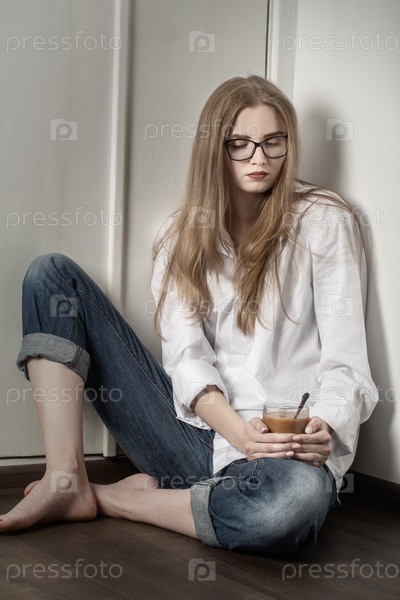 Грустная блондинка