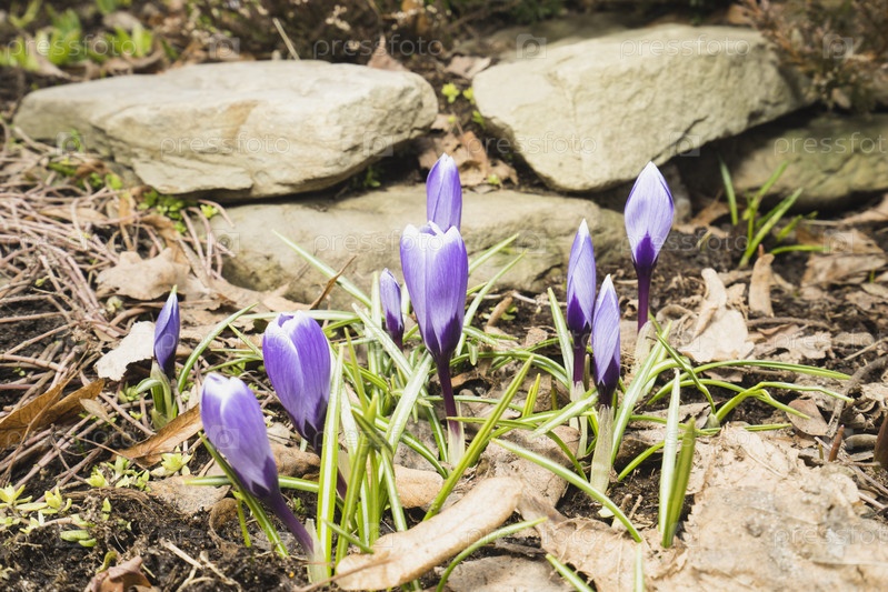 Крокусы цветут в весеннем саду