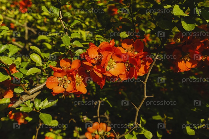 Густо цветущая японская айва весной