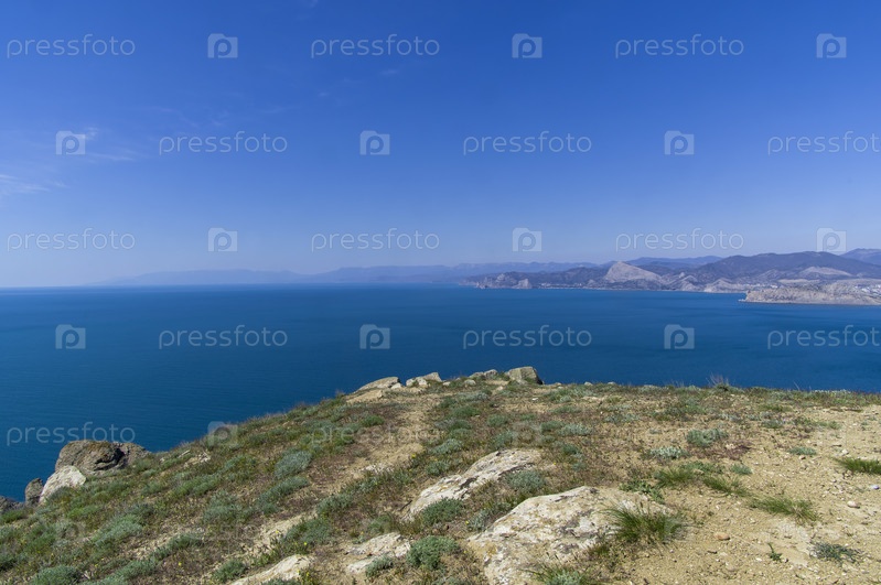 Вид с одной из вершин Мыса Меганом вдоль побережья Черного моря в западную сторону. Крым