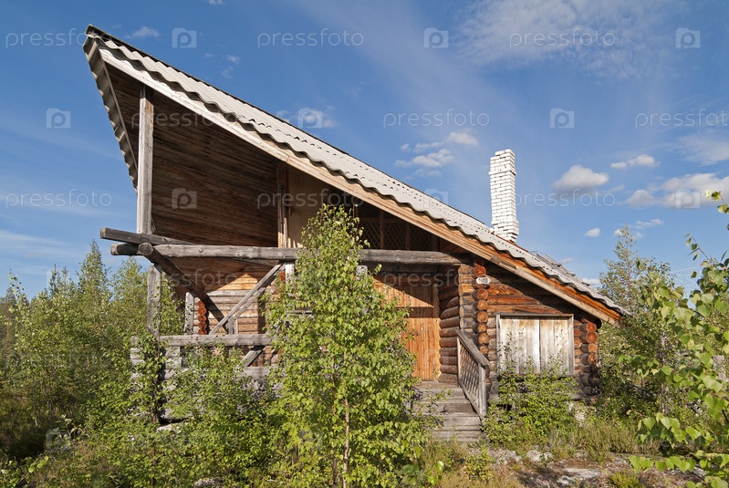 Дачный домик в лесу. Река Чирко-Кемь, недалеко от порога Тахко-Падун, Карелия, Россия. Август