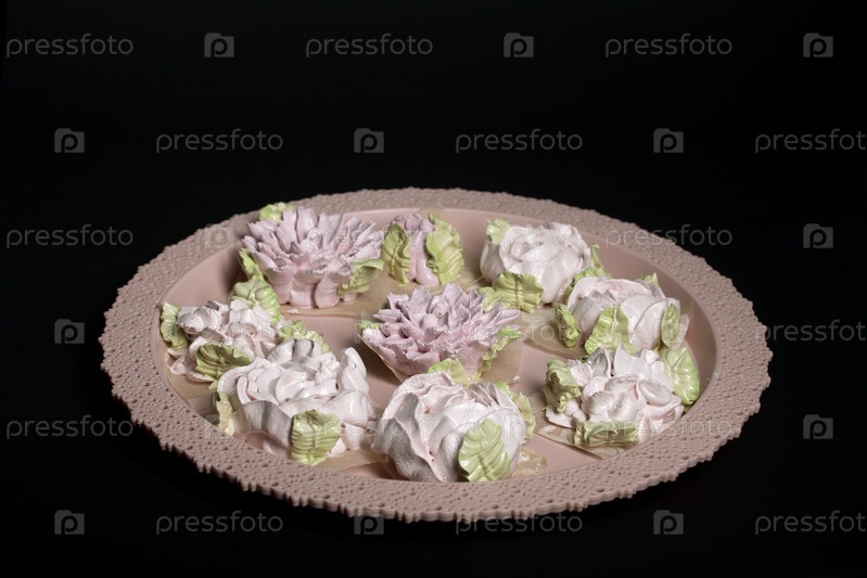 Цветы зефира на подносе. Цветочные бутоны зефира. Домашние сладости